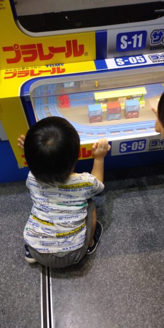 いとこのお兄ちゃん達にプラレールのお下がりを沢山頂いてから、すっかり(まず、私が)プラレールにハマり、長男も今では踏み切りを入れてみたり、まがレールを入れてみたりと、上手にレイアウトして、繋げる様になりました。情報公開されてから、ずっと楽しみにしていたプラレール博へいざ出発!!