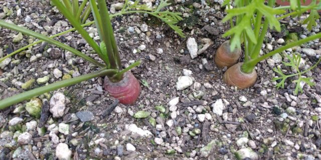 まだ、収穫していないにんじん。にんじんの収穫時期がわからず、とりあえずまだ、眠らせています。