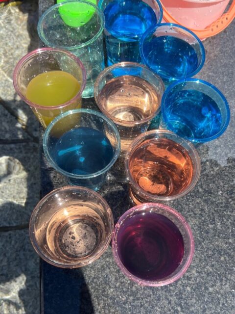 最近ハマっている色水遊びもしっかりと♪ジュース屋さんで大盛り上がり♪