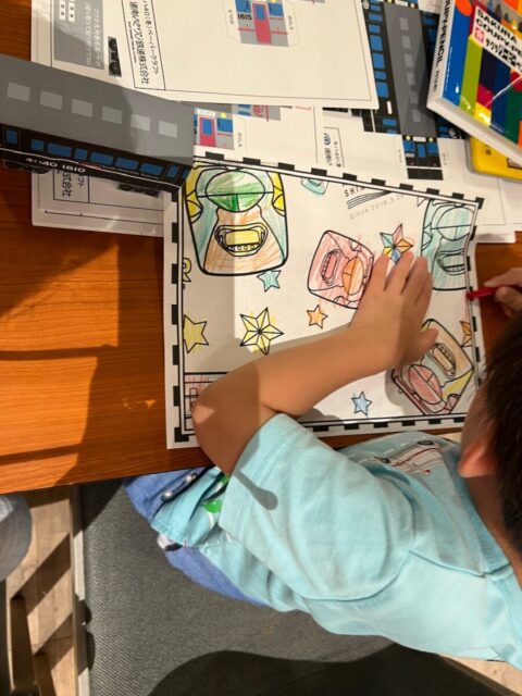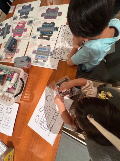 自分の番がくるまで、塗り絵やクラフト制作をしたり、Nゲージ鉄道模型を見たり…。