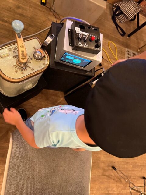まずは、一番楽しみにしていた『市電運転シュミレーター』を受付をしました。去年はオープンと同時に入場したのですが、激混みで、1時間以上も待ち時間がありました。今回はちょうどお昼に行ったのもあり、30分ほど。