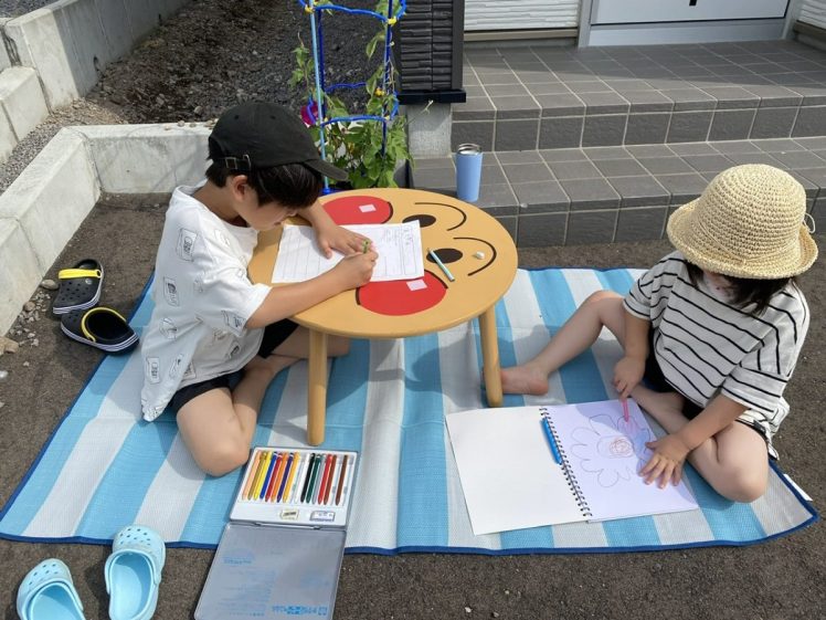 お天道様の下での宿題ははかどるな~!!